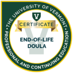 Nationwide, she supports doulas' professional growth as a discussion facilitator with the National End-of-Life Doula Alliance (NEDA). She also teaches in the University of Vermont’s End-of-Life Doula Professional Certificate program.